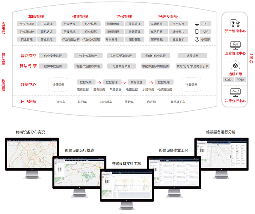 實現了車輛數據的全面互通和全車OTA能力,通過底盤和上裝的協同控制,精確收羅作業數據,推進車輛作業寧靜臺監控的數字化精細化治理