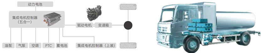 電機控制器集成了多項功效,包羅MCU、DCDC轉換器、雙DCAC逆變器和PDU(功率分配單元),能夠為車輛上裝提供高達150kw的連續功率輸出,滿足高功率應用需求,增強了車輛的整體性能和適用性。