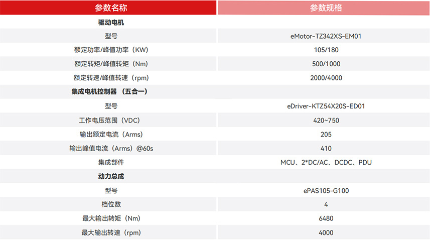 永磁同步電機+4AMT變速箱,調教優化,系統效率高至94%; 180 kW峰值功率、1000 Nm峰值扭矩,動力充沛; 動力優于同品級功率電機約8%